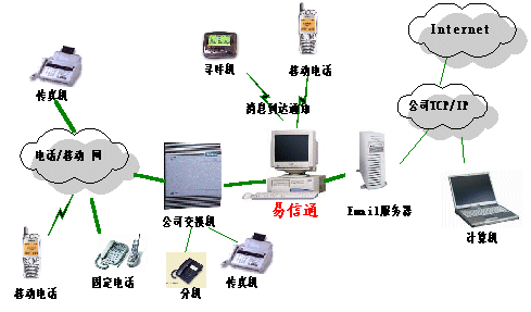 易信通可代替:語音信箱、自動總機、傳真服務(wù)器。