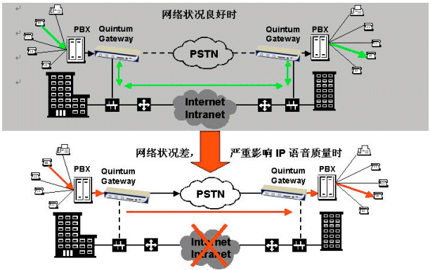 。。Quintum TASQTM專利技術(shù)可動(dòng)態(tài)監(jiān)控網(wǎng)絡(luò)流量狀況,在任何時(shí)刻當(dāng)網(wǎng)絡(luò)頻寬低于企業(yè)預(yù)設(shè)門限值,以致于無法負(fù)荷企業(yè)所要求的語音品質(zhì)時(shí),語音回路將自動(dòng)切換到傳統(tǒng)