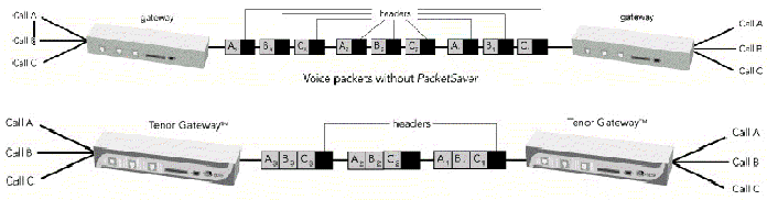 saverTM會(huì)將同一時(shí)間通話中將同一個(gè)目的地的所有語音IP包的包頭部分共享,這樣可以節(jié)省許多頻寬,并加快設(shè)備運(yùn)作的速度。經(jīng)過實(shí)驗(yàn)證明:只需三方電話就可改善40%的頻寬使用效率。此特色讓Quintum