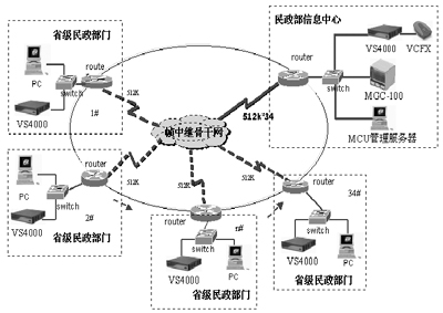 PolyCom為民政部門(mén)提供了一套MGC-100視頻多點(diǎn)控制單元(MCU),安裝在民政部門(mén)信息中心,34臺(tái)PolyCom VS4000機(jī)架式系統(tǒng),在民政部門(mén)北京中心會(huì)場(chǎng)配備2臺(tái),其余部署在其他省、自治區(qū)、直轄市以及計(jì)劃單列市民政部門(mén)的視頻分會(huì)場(chǎng)。