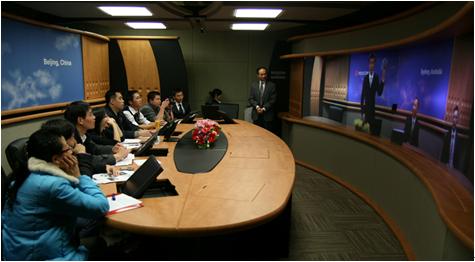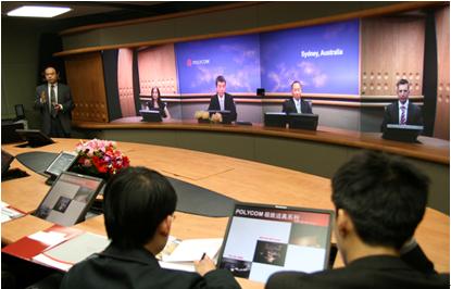 事實上,屏幕中的蔣毅軍遠(yuǎn)在澳大利亞,營造這種面對面的感覺的是寶利通RPX極致遠(yuǎn)真系統(tǒng)。日前,在這間體驗中心中,寶利通公司中國區(qū)總經(jīng)理李鋼和中國區(qū)技術(shù)總監(jiān)余寶生講述了寶利通極致遠(yuǎn)真的性能和與網(wǎng)真的區(qū)別。