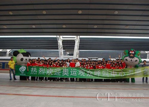 經(jīng)過(guò)23 個(gè)小時(shí)的車(chē)旅生活,我們來(lái)到了我們偉大的首都--北京.激動(dòng),意外,驚喜.我從來(lái)沒(méi)有想過(guò)會(huì)有福娃來(lái)接我們.當(dāng)我們所有人看到晶晶和貝貝時(shí)候.23 個(gè)小時(shí)的勞累一掃而空.在奧組委的工作人員的帶領(lǐng)下.我們?cè)谝惶?hào)站臺(tái)集合.終于可以滿(mǎn)足大家的心愿拉!!-和福娃合影咯!看看大家多有激情!那2個(gè)福娃是大家精神的強(qiáng)大的動(dòng)力.哈哈.和我們親愛(ài)的奧運(yùn)吉祥物合影留念后.大家坐上涼爽的冷巴.向我們的駐地開(kāi)進(jìn)!
