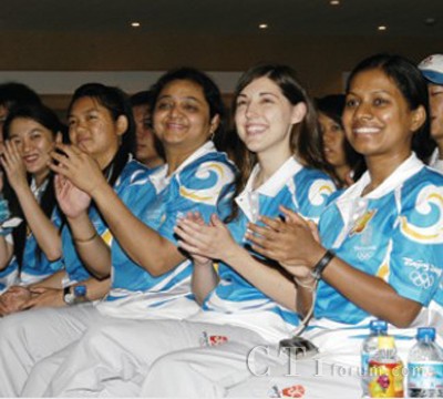 我們討論的最多的一個話題是奧運(yùn)會的志愿者。他們問:“老師,你們參加北京奧運(yùn)會的志愿服務(wù)有什么收獲和感受?”我們說:“能為人類先進(jìn)文化的傳播做志愿服務(wù)讓我們感受到參與的快樂,收獲了幸福!薄澳苡米约旱乃鶎W(xué)在國家需要時出力,讓我們感到無比的自豪,收獲了愉快!彼麄冇謫枺骸澳銈冊趭W運(yùn)會期間是怎樣服務(wù)的呢。”我們說:“我們在觀眾呼叫中心接聽電話,為每位打來電話的觀眾解決觀賽時的所求!蔽覀儼言诜⻊(wù)中的一些小故事講給他們聽。例如,清華大學(xué)一位王老師參加開幕式時不慎將家門鑰匙丟失了,打來求助電話。我們就幫他找。中央電視臺的一位外國朋友在五棵松場館看比賽時丟了照相機(jī),我們也積極幫助他查找。我們還講,每天走在街上準(zhǔn)能碰到有人前來向我們問路。我們能立即準(zhǔn)確地給他們指出他們要去的地方該怎么乘車怎么走。有一次巧遇了一位巴西籍志愿者,我們?yōu)樗隽艘淮螌?dǎo)游,相處得非常愉快。后來還接到了她的感謝信。我們用所學(xué)的外語在奧運(yùn)志愿服務(wù)中為國家贏得了尊嚴(yán)和友誼,這件事讓我們激動了許久。