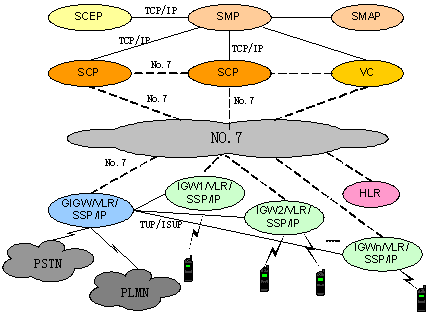 具備多個(gè)本地網(wǎng)甚至全省統(tǒng)一建設(shè)業(yè)務(wù)平臺的優(yōu)勢,SCP通過No.7信令鏈路與移動IGW/SSP相連,所以可以統(tǒng)一在省會城市設(shè)置一套PCS智能網(wǎng)系統(tǒng),即可向全省的PCS用戶提供智能業(yè)務(wù)。
