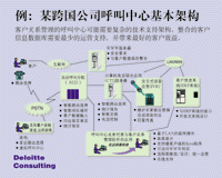 ---- 圖示是一個(gè)由德勤咨詢(xún)公司為一全球性客戶提出的呼叫中心建議,呼叫中心經(jīng)常需要這樣復(fù)雜的一個(gè)技術(shù)平臺(tái)和基礎(chǔ)支持才可能實(shí)現(xiàn)快速的來(lái)電和去電處理。