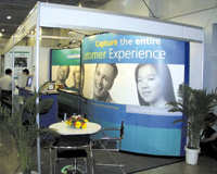 出門左拐,輕輕松松地進(jìn)了Call Center '2000展廳的大門。還是Call Center 好,大門永遠(yuǎn)敞開(kāi),讓用戶、廠家及所有感興趣的人都來(lái)參觀,共同培育Call