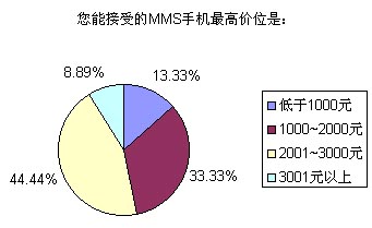 題7對(duì)終端提供商在定價(jià)方面很有幫助的,A~D的答案被選幾率分別為13.33%、33.33%、44.44%和8.89%,看來(lái)1000~3000元的價(jià)位是用戶關(guān)注的焦點(diǎn),相對(duì)于現(xiàn)在的市場(chǎng)狀況,終端廠商在將來(lái)MMS上面的競(jìng)爭(zhēng)環(huán)境還是比較友好的,至少價(jià)格上處于買方市場(chǎng),可以預(yù)計(jì)當(dāng)MMS投入運(yùn)營(yíng)的頭半年,MMS終端將維持在2500~3500元以上的檔次,6~12個(gè)月以后才會(huì)真的降到2500以內(nèi)去迎合尋常百姓的消費(fèi)能力。