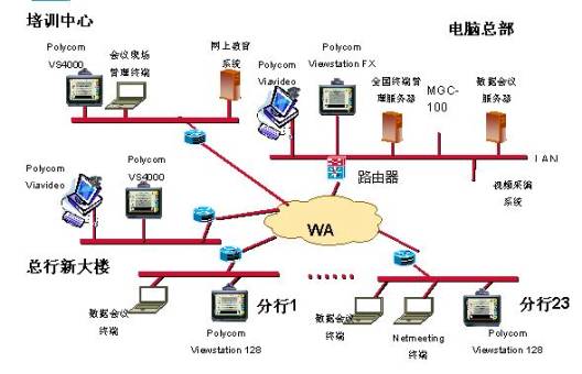 招商銀行視頻會(huì)議系統(tǒng)拓?fù)鋱D如下: