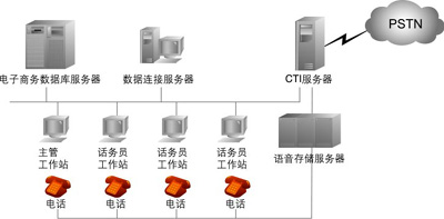 CTI服務器是一臺與交換機相聯(lián)、通常內(nèi)插CTI板卡的計算機,它通過接收來自交換機的事件/狀態(tài)消息和向交換機發(fā)送命令,實現(xiàn)計算機對整個呼叫中心的全面管理。同時,CTI服務器屏蔽了交換機與計算機之間復雜的通信協(xié)議,向上提供統(tǒng)一的編程接口,使開發(fā)人員能方便地開發(fā)呼叫中心的各類應用。CTI服務器一般由電話服務單元、安全數(shù)據(jù)庫和電話服務庫等組成,實現(xiàn)同步語音與數(shù)據(jù)的傳送、協(xié)調語音與數(shù)據(jù)的轉移、智能路由等功能。