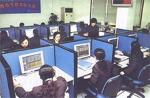 圖為經過專業(yè)培訓的客戶服務代表正在親切客戶來電