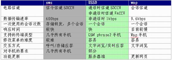 USSD可以提供比短消息更為復(fù)雜的無(wú)線業(yè)務(wù),也就意味著業(yè)務(wù)的開發(fā)和部署更加復(fù)雜。基于GSM的USSD技術(shù)的出現(xiàn)和成熟,解決了WAP方式交易成本高和SMS(短消息)方式無(wú)法實(shí)現(xiàn)業(yè)務(wù)交互流程、表達(dá)能力差的弱點(diǎn),提供了面向連接的透明傳輸通道。