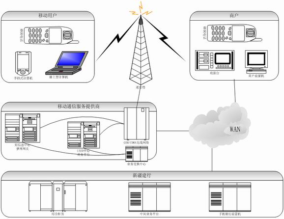 2) 商戶:可以移動(dòng)終端或聯(lián)網(wǎng)的商戶款臺(tái),接受移動(dòng)客戶支付的結(jié)果。