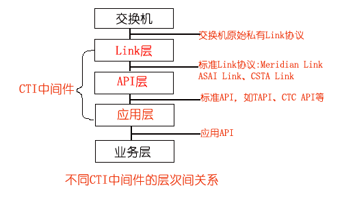 在Link層的基礎(chǔ)上,實(shí)現(xiàn)把標(biāo)準(zhǔn)Link協(xié)議轉(zhuǎn)化為標(biāo)準(zhǔn)的API,如CTC API、TAPI、JTAPI等,為CTI應(yīng)用開發(fā)提供一套標(biāo)準(zhǔn)的API,屏蔽了不同交換機(jī)擁有的CTI協(xié)議和CTI接口,使應(yīng)用程序員無(wú)需關(guān)心消息是如何在計(jì)算機(jī)和交換機(jī)之間傳遞,專注于客戶端的應(yīng)用開發(fā),實(shí)現(xiàn)應(yīng)用程序與交換機(jī)平臺(tái)無(wú)關(guān)性。