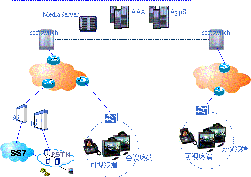 該方案除了提供點對點可視業(yè)務(wù),還能充分利用軟交換設(shè)備的互通能力,可視終端可以和PSTN網(wǎng)絡(luò)進(jìn)行互通,以及和其它的IAD終端進(jìn)行互通,避免了單獨建立一個可視網(wǎng)絡(luò)而帶來的經(jīng)營風(fēng)險。