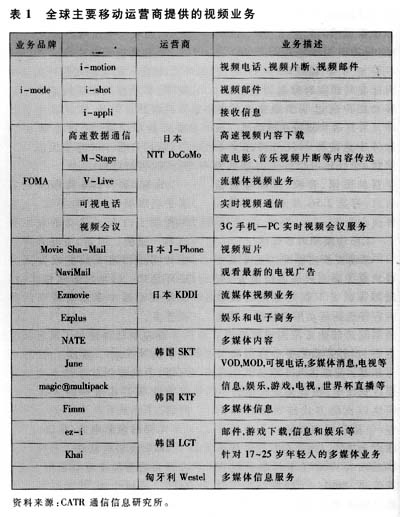 2003年,全球移動運營商大力開展移動視頻業(yè)務,MMS在全球廣泛推廣,而其他移動視頻業(yè)務將隨著移動網(wǎng)絡和移動終端的成長不斷實現(xiàn)和發(fā)展。主要移動運營商提供的關鍵視頻業(yè)務如表1所示。