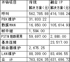 某企業(yè)傳統(tǒng)方案與融合方案年運(yùn)營(yíng)開銷對(duì)比