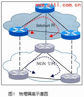 為了滿足NGN業(yè)務的不同需求,需要將NGN業(yè)務與Internet業(yè)務進行隔離,這種隔離可以是物理網絡的隔離,也可以是邏輯網絡的隔離。