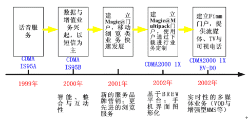 通過與手機(jī)芯片廠商密切合作并依靠韓國終端廠商較強(qiáng)的制造能力,KTF較早地解決了CDMA2000 1X手機(jī)與EV-DO手機(jī)的基本性能問題(性能對(duì)比見表3),不僅抵消了用戶的使用顧慮,而且也為不斷推出新的高速數(shù)據(jù)與增值業(yè)務(wù)奠定了較好的終端應(yīng)用基礎(chǔ)。