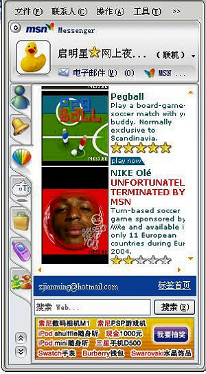 3) 拼接代替加強(qiáng),F(xiàn)有應(yīng)用的簡(jiǎn)單決定了IM軟件本身的簡(jiǎn)單,因此IM本身變得不受關(guān)注,廠(chǎng)商所作的大多是功能拼接,例如MSN加強(qiáng)聯(lián)網(wǎng)游戲,QQ傍上移動(dòng)。甚至可以認(rèn)為,IM本身已經(jīng)被置于次要位置。
