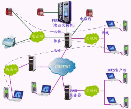 3UCS秉承便捷溝通、高效辦公之理念,將企業(yè)語音通訊、數(shù)字通訊整合在同一通訊線上,將電話交換機功能延伸至IP網絡,電話與傳真線路共享,有效利用線路資源,無縫連接三個網絡(電話網、局域網、因特網),將電話交換機、傳真服務、消息等功能集于一身, 利用現(xiàn)有的局域網、因特網接打電話,收發(fā)傳真。