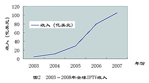 圖2 2003-2007年全球IPTV業(yè)務(wù)收入預(yù)測