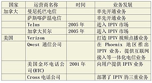 加拿大和美國IPTV運(yùn)營商的經(jīng)營情況如表2和表5。