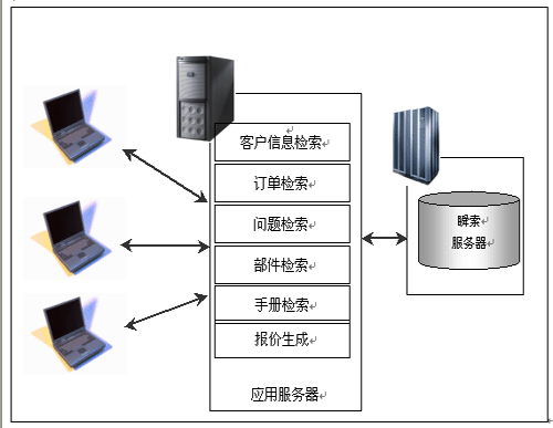 前臺(tái)接待人員接到客戶的請(qǐng)求之后,可以根據(jù)客戶提供的信息查詢(xún)到該客戶的所有相關(guān)信息,包括姓名、電話號(hào)碼、地址、所持有的產(chǎn)品號(hào)、歷史的購(gòu)買(mǎi)和維修記錄等;根據(jù)用戶的問(wèn)題描述,查詢(xún)出歷史記錄中相同的問(wèn)題及解決方法,從而提供給用戶詳細(xì)的信息(維修方法,所需部件,需要的時(shí)間和詳細(xì)報(bào)價(jià)等);得到客戶的同意后,為用戶生成訂單。