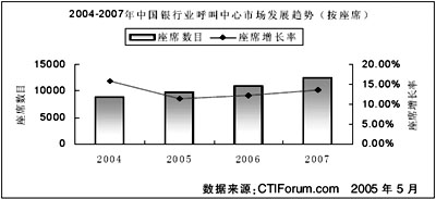 根據(jù)CTI論壇預(yù)測,到2007年,銀行業(yè)呼叫中心的座席總數(shù)將達到12500個,累計投資額將達到70億元。2005年到2007年的投資額復(fù)合年平均增長率為14.86%。未來,銀行業(yè)在未來三年內(nèi)的發(fā)展穩(wěn)定,并以較高速度增長。
