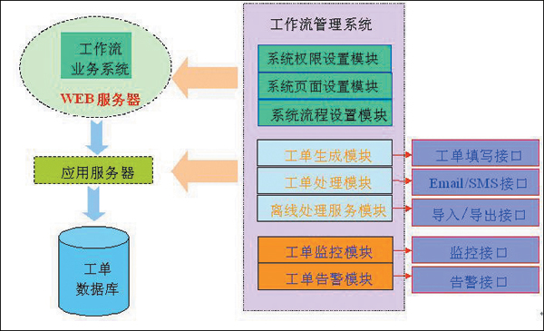 第三部分是工作流業(yè)務(wù)系統(tǒng),提供工作流系統(tǒng)的各項(xiàng)處理功能,包括復(fù)核、派單、處理、反饋、查詢(xún)等功能。該系統(tǒng)運(yùn)行在Web服務(wù)器上,最終用戶(hù)只需要在瀏覽器上輸入該工作流業(yè)務(wù)系統(tǒng)的網(wǎng)址就可以使用該系統(tǒng)。