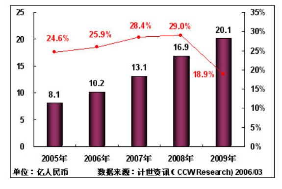 計世資訊(CCW Research)預(yù)計:2006年中國城市應(yīng)急聯(lián)動系統(tǒng)IT投資將保持25.9%的增長率,投資規(guī)模將達(dá)到10.2億元;由于"十一五"規(guī)劃的實施,以及數(shù)字奧運進(jìn)入關(guān)鍵建設(shè)階段,預(yù)計在2007年,中國城市應(yīng)急聯(lián)動系統(tǒng)增長率達(dá)到28.4%,2008年增長率達(dá)到29.0%;到2009年中國城市應(yīng)急聯(lián)動系統(tǒng)將進(jìn)入穩(wěn)定增長階段,IT投入將達(dá)到20.1億元。