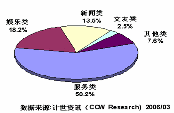 2006年,IVR業(yè)務(wù)的發(fā)展已經(jīng)具備了良好的外部條件。首先,具有龐大的潛在用戶群。有關(guān)統(tǒng)計(jì)顯示,截至2005年11月,中國移動(dòng)用戶數(shù)量達(dá)到3.88億,固定電話用戶數(shù)量達(dá)到3.51億,其中無線市話用戶數(shù)量達(dá)到8622萬。其次,市場容量急劇膨脹;再次,業(yè)務(wù)收入快速增長;最后,IVR不受手機(jī)型號(hào)的限制,潛在用戶的普及率極高。這些使得IVR具有良好的發(fā)展?jié)摿,?jì)世資訊(CCW Research)認(rèn)為,IVR是繼短信(SMS)之后的又一座大型金礦。