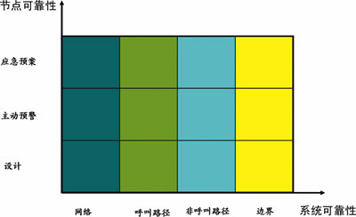 呼叫路徑的節(jié)點可靠性分析包括以下3個層次,即節(jié)點的設計可靠性、節(jié)點主動預警能力、節(jié)點的故障應急預案。