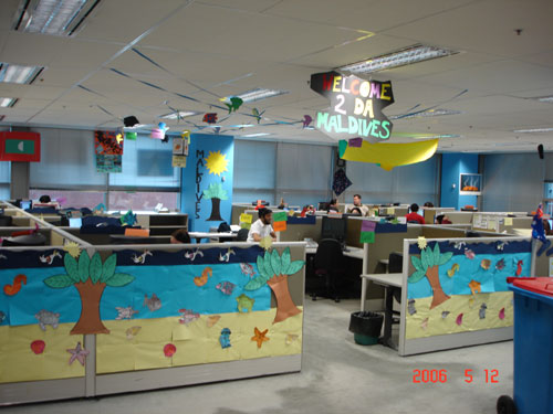 由于這種獨(dú)特的管理方式吸引了眾多的同行前來(lái)參觀,該中心特別安排了熱情的Sally負(fù)責(zé)導(dǎo)游。Sally帶我們參觀說(shuō)的第一句話(huà)就是:“我真是喜愛(ài)我們的呼叫中心,這里的年輕人富有創(chuàng)意,充滿(mǎn)激情,他們非常喜歡在這里工作!庇谑俏覀儏⒂^了“蜘蛛俠”,“蒙娜麗莎”,“大英帝國(guó)”,“典雅餐廳”,“熱帶公園”,“幾何世界”,“海底世界”,“白色圣誕節(jié)”等不同的Pod,實(shí)在是好像到了聯(lián)合國(guó)。