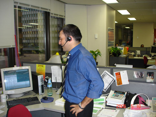 Colonial公司是一家大型的銀行業(yè)務(wù)呼叫中心,座落在悉尼市區(qū)最熱鬧的喬治大街附近,相當(dāng)于我們的上海淮海路。這里的幾百個(gè)座席分布在寫(xiě)字樓的好幾個(gè)樓面,所有座席都是使用大北歐的無(wú)線(xiàn)耳嘜-GN9120。筆者記得上月去東京參觀HONDA的呼叫中心,那里只有不到三十個(gè)一線(xiàn)的座席代表使用無(wú)線(xiàn)耳嘜,這里則是所有人都配備了這種先進(jìn)的無(wú)線(xiàn)設(shè)備。筆者看到不少員工站著工作,還有少數(shù)走動(dòng)辦公,員工在座位上可以輕松轉(zhuǎn)身,隨時(shí)調(diào)整姿勢(shì),讓身體處于松弛狀態(tài),這種輕松自如想必電話(huà)線(xiàn)那頭的客戶(hù)也感同身受。呼叫中心的經(jīng)理Venessa告訴筆者,這里的服務(wù)內(nèi)容比較豐富,對(duì)員工的業(yè)務(wù)能力要求很高,所以他們?yōu)閱T工提供一流的工作環(huán)境以減少人員流失率,降低招聘和培訓(xùn)成本,提高客戶(hù)滿(mǎn)意度。