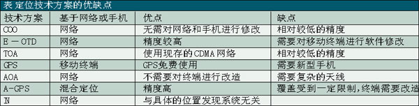基于移動終端的定位技術(shù)包括全球定位系統(tǒng)——GPS、基于移動終端信號發(fā)送和接收的時戳或角度的技術(shù)——E-OTD(增強(qiáng)觀測時間差分)/TOA(到達(dá)時間),以及來源蜂窩小區(qū)——COO技術(shù)(還有所謂的輔助GPS—A-GPS技術(shù)作為對COO技術(shù)的補(bǔ)充)。