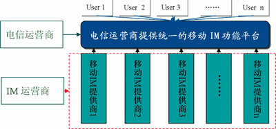 為了能夠使移動IM有效占據(jù)在未來競爭中的主動地位,運營商就必須在自有網(wǎng)絡上對移動IM功能進行統(tǒng)一和標準化,并對其他的移動IM予以限制和管理,以便形成合力,實現(xiàn)其既定目標。