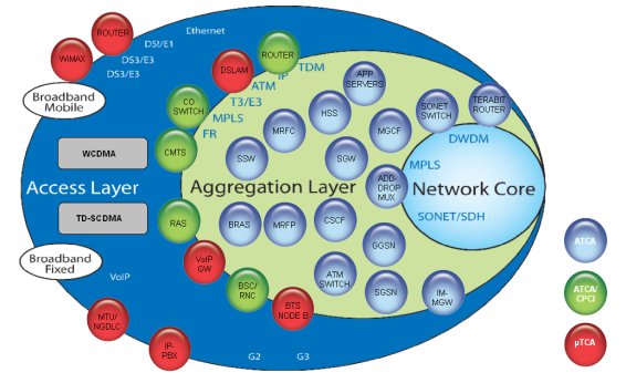 在匯聚層與核心網(wǎng),對高可用性、傳輸容量與事務處理能力要求很高。ATCA通常是高性能的最佳選擇。mTCA與ATCA可對電信網(wǎng)中要求的操作性與高可用性提供與生俱來的支撐,而其它IT技術(shù)卻做不到。ATCA與mTCA作為一種系統(tǒng)技術(shù),是電信級業(yè)務與商用組件之間自然而然的選擇。