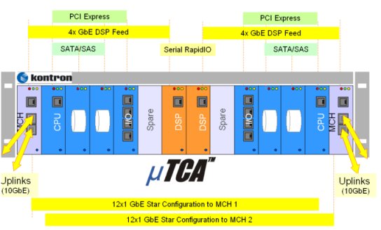 圖中ATCA系統(tǒng)適用于高性能呼叫服務器、IMS服務器及應用服務器。除了緊湊的機箱結(jié)構(gòu),它還可以使用AMC模塊,如用存儲模塊擴展存儲能力,用DSP模塊處理媒體流。