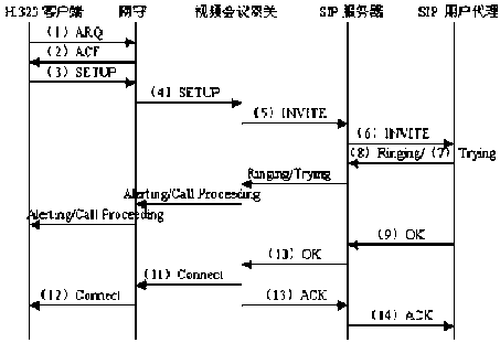 為了更好的說明視頻會議網(wǎng)關(guān)在跨協(xié)議會議系統(tǒng)中的作用和工作流程,我們以一個由H.323客戶終端發(fā)起的會議請求為例來描述視頻會議網(wǎng)關(guān)對兩種協(xié)議信令消息的處理過程(如圖2所示)。