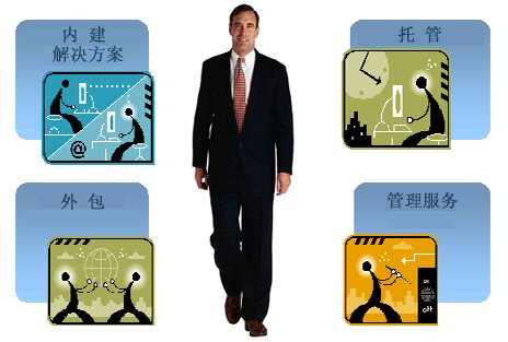 內(nèi)建——作為終端用戶的企業(yè)從供應商那里購買一個解決方案然后安裝在自己那里。系統(tǒng)可以由終端用戶自己,咨詢顧問公司或者供應商來安裝。一旦系統(tǒng)安裝完畢之后終端用戶就可以自己管理它或者由管理服務提供商(通常是咨詢顧問公司或者外包商)進行管理。