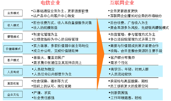 圖:電信企業(yè)與互聯(lián)網(wǎng)企業(yè)差異分析