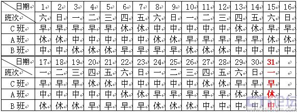 1)正常日班人員:主要的工作時間是8:00~16:00,該班組人員是固定在這一時間段內(nèi)工作,不另作安排。