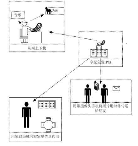 to Point Protocol over Ethernet)方式連接到ONU或ADSL的調(diào)制解調(diào)器上,手機通過有線寬帶接入網(wǎng)與采用TCP/IP協(xié)議的因特網(wǎng)就連接起來了,這樣手機用戶就可去享受免費IP包服務(wù)。