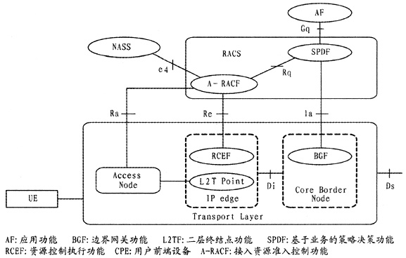 NGN服務層包含應用功能(AF),它提供了IP承載資源的控制請求服務,例如IMS中的AF即是P-CSCF和I-BCF。RACS總體功能結構中各個功能模塊的作用如下: