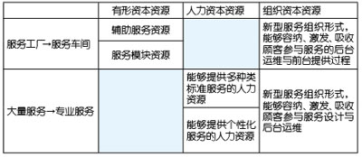 本質(zhì)上講,電信服務(wù)產(chǎn)品的四類服務(wù)都是在此二維機(jī)理的作用下生成的,服務(wù)的內(nèi)容映射著企業(yè)的有形資本資源和人力資本資源,服務(wù)的過(guò)程映射著企業(yè)的組織資本資源,從一種服務(wù)向另一種服務(wù)躍遷,不僅僅是服務(wù)過(guò)程和服務(wù)內(nèi)容的重新整合,更重要的是需要彌補(bǔ)相應(yīng)的資源,才能達(dá)到服務(wù)生成的結(jié)果,否則,躍遷就不會(huì)成功。