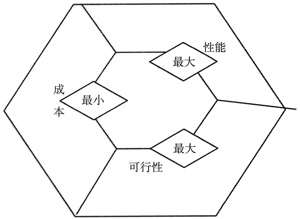 一個最優(yōu)的網(wǎng)絡具有的特性是:具有最好的性能,可以具體的施行并且成本盡可能的小,如圖3所示。