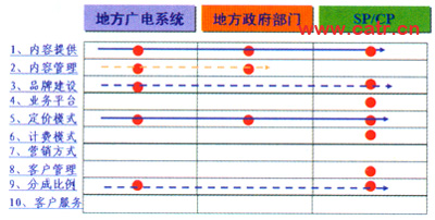 在投資與收益方面,雙方共同出資,成立公司,調(diào)動(dòng)雙方相關(guān)的優(yōu)勢(shì)資源。并且協(xié)調(diào)了與SP/CP、政府、行業(yè)部門等多方面原本復(fù)雜的關(guān)系。能夠增加的收入是點(diǎn)播和直播節(jié)目收費(fèi)。收費(fèi)模式方面增加電視包月費(fèi)、頻道組合費(fèi)。合作分成通過(guò)股份公司分紅。
