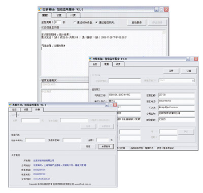 該引擎啟動(dòng)后常駐內(nèi)存,7*24小時(shí)不間斷運(yùn)行,提供短信收發(fā)服務(wù),并提供多種二次開發(fā)接口(VB、Java、DB)