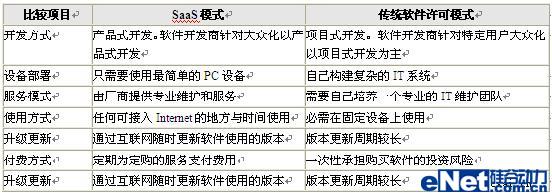 通過上面的分析我們總結(jié)出SaaS模式與傳統(tǒng)軟件許可模式的區(qū)別: