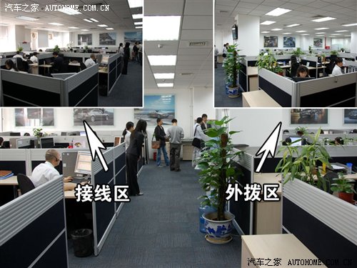 這是寶馬客服呼叫中心大廳,共分兩個(gè)區(qū)域,分別是接線區(qū)和外撥區(qū)。(如上圖所示)通過對(duì)寶馬呼叫中心的采訪我們得知,客服中心的員工在正式上崗之前有2個(gè)月的培訓(xùn)期,培訓(xùn)兩個(gè)月后才能正式上崗;所以員工一個(gè)月共接8000多個(gè)電話,所有電話均有錄音。